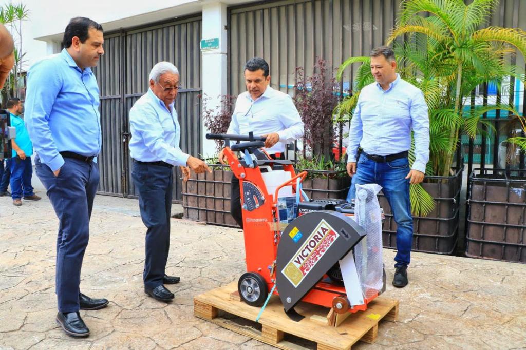 Durante el evento de entrega, el titular de la SOP del Municipio, Eusebio Alfaro Reyna, destacó que la máquina Husqvarna FS 400 está equipada de un disco de diamante que facilitará el cuadrado de la superficie de rodamiento dañada para su correcta reparación.